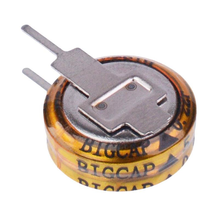 0.22F 5.5V super capacitor suitable for vertical mounting PCB applications including memory backup.
