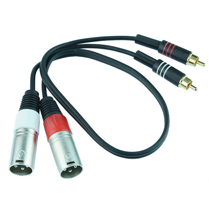 Twin RCA male jack plug to twin male XLR lead featuring a 1.5 metre cable length, manufactured from high quality materials to provide the user with a reliable lead for use with a wide range of audio equipment including mixers and controllers.