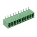 10 pole 3.5mm pitch Horizontal orientation Closed ends Material: PA66 PCB hole diameter: 1.4mm Rating: 8A 300V