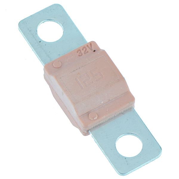 125A Pink Midi Fuse suitable for automotive use. The Midi fuse is designed for high current protection and time delay characteristics. Includes bolt down mounting holes.