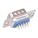 Male D sub connector featuring 15 ways compromised in 3 rows, suitable for panel mounting. The connector features 25.0mm mounting hole pitch and solder termination.