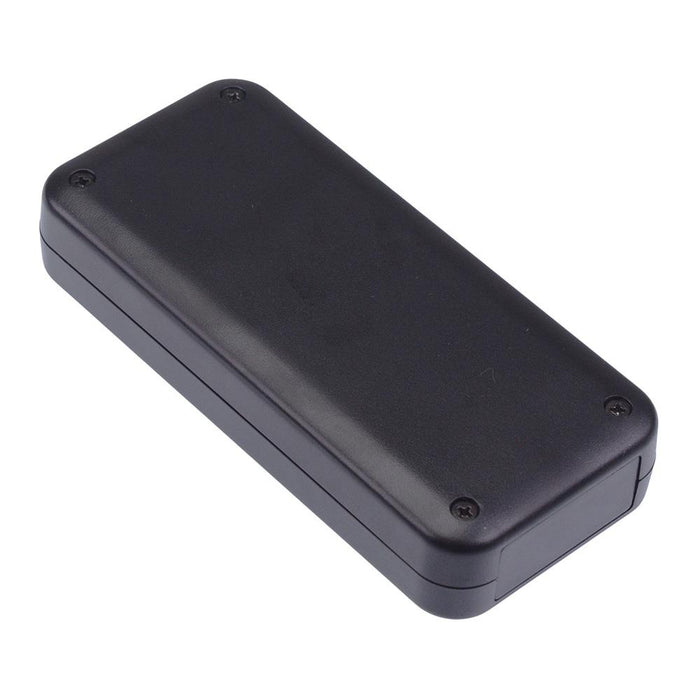 1552C3BK Hammond ABS enclosure with a Black finish, suitable for a wide range of applications including mounting printed circuit boards. The enclosures form a tight and secure fit to protect the electronics from dust and water, they have a protection rating of IP54. The enclosures are made from FRABS and come with 4 self-tapping screws to secure the lid.