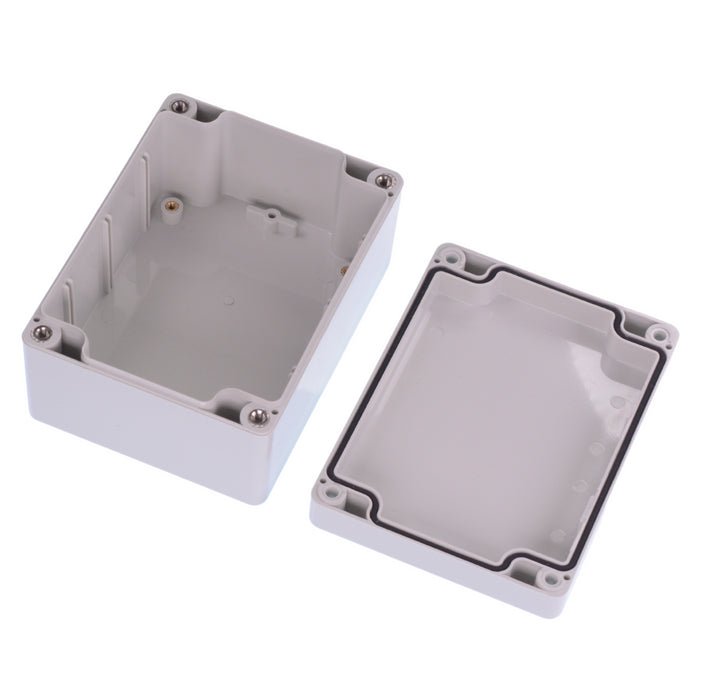Watertight ABS enclosure suitable for a wide range of applications including mounting printed circuit boards or DIN rail mounted components. The enclosures form a tight and secure fit to protect electronics from dust and water, watertight protection rating IP66. The enclosures are made from general purpose ABS and include screws to secure the lid.