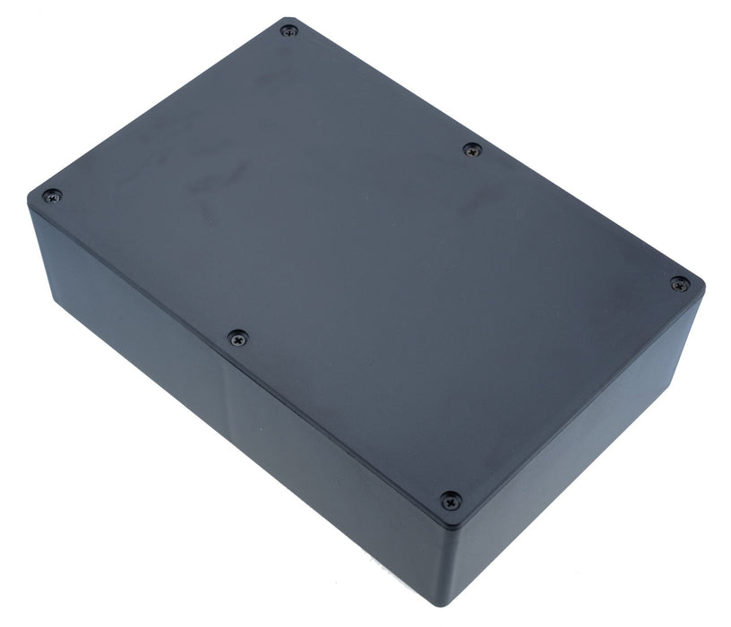 Hammond ABS enclosure suitable for a wide range of applications including mounting printed circuit boards. The enclosures form a tight and secure fit to protect the electronics from dust and water, they have a protection rating of IP54. The enclosures are made from ABS and come with 6 black self-tapping screws to secure the lid.