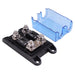 2 ways Includes 2 100A mega fuses Wire entry: 18mm max 5.5mm mounting holes Mounting hole pitch: 50.8 x 109.3mm Dimensions: 126.8 x 44.8 x 70.1mm (length x height x width)