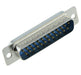25-way D plug with solder termination and straight orientation.