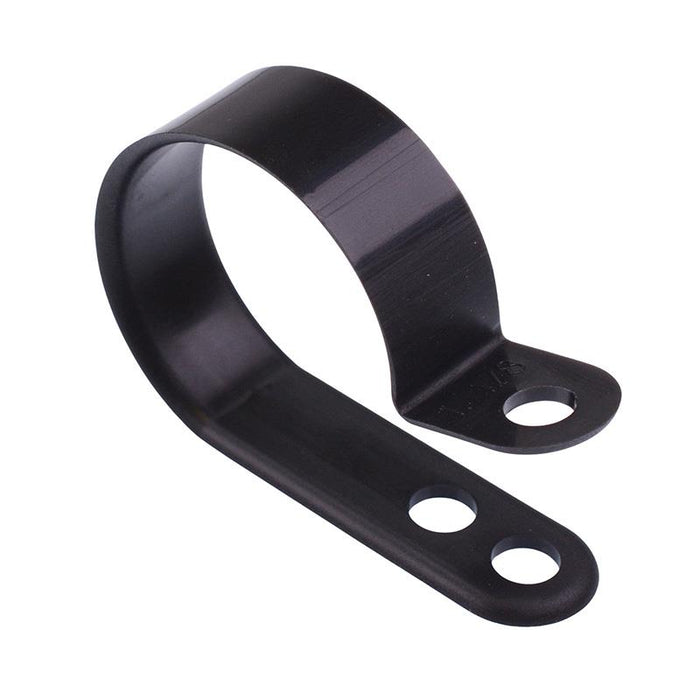 Black Nylon P Clips for permanent or semi permanent cable fixings. These P Clips have a good temperature resistance, are high strength and lightweight making them suitable for various industries including aircraft and aerospace.