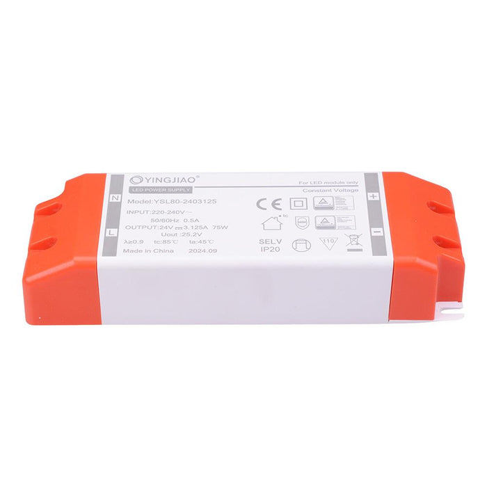 80W constant voltage power supply featuring a 24VDC 3.3A output, housed in a compact package. The driver is connected using the screw terminals and features over-voltage, overload, short-circuit protection. The power supply is suitable for a wide range of lighting and LED applications.