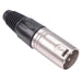 XLR cable connector featuring 3 poles and straight orientation. The plug features an ergonomic handle and provides an easy to wire, reliable connection.