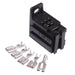 Black 5 pin micro relay holder housing complete with latched 6.3mm female terminals, for use with SPNO and SPDT automotive micro relays.