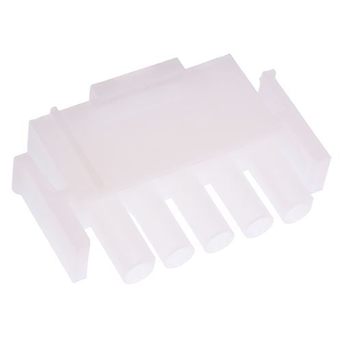Single row 5 way male mate n lock housing featuring 6.35mm pitch suitable for mating with a female housing. The connector features a lock to ensure secure retention when mated, suitable as a replacement for Molex MLX connectors.