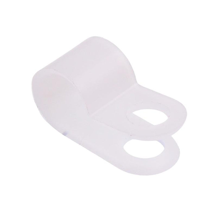 Natural Nylon P Clips for permanent or semi permanent cable fixings. These P Clips have a good temperature resistance, are high strength and lightweight making them suitable for various industries including aircraft and aerospace.