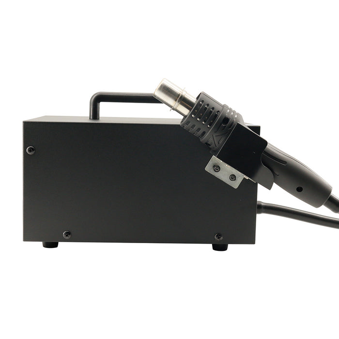 Power: 550W Temperature range: 100℃ to 500℃ Air flow grades: A25-A99 Easy temperature/air flow setting Fault alarm, standby and temperature callibration function High power diaphragm pump with high pressure Intelligent cooling system and deferred power-off function Voltage: 230VAC UK plug
