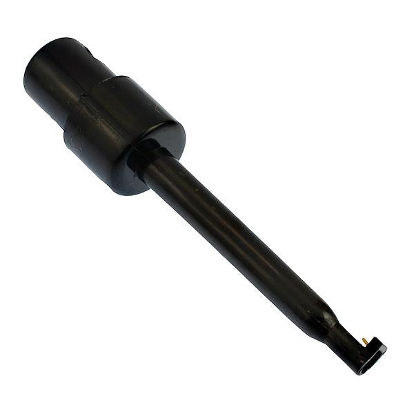 Black test probe featuring a sprung hook clip designed to make a secure connection with wire and small components.
