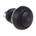 Black latching push button switch featuring a round actuator and red LED. The switch features IP65 protection rating and is suitable for mounting in 12mm diameter cut-outs. The switch is suitable for a wide range of applications including automotive, control panels, industrial, appliances etc.