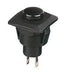 Black low profile momentary push to break switch featuring a round actuator and solder lug terminals. The switch snap-fits into a 12.7mm cut-out and is part of the SCI R13-510 series.