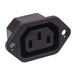 3 pole C13 chassis outlet connector featuring 4.8mm quick connect terminals and 10A 250VAC rating. The connector is suitable for mating with C14 connectors in a wide range of power applications.