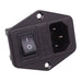 Fused and switched 3 pole C14 IEC chassis Inlet featuring a 10A 250VAC rating and 4.8mm quick connect terminals. The connector incorporates a DPST On-Off switch and the fuse holder accepts 5x20mm glass or ceramic fuses.