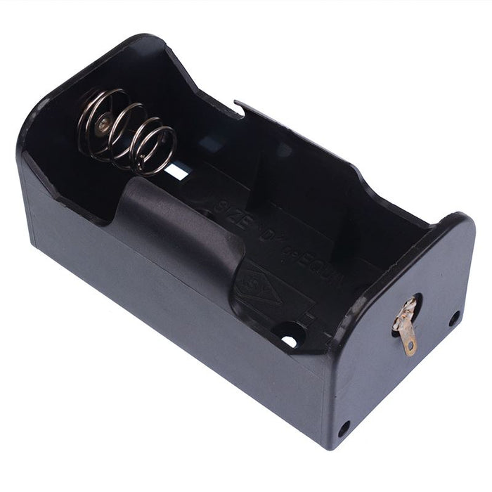 Holds 1 D battery Solder lug terminals Black polypropylene housing Dimensions: 68.5 x 35 x 27mm (Length x Width x Height)