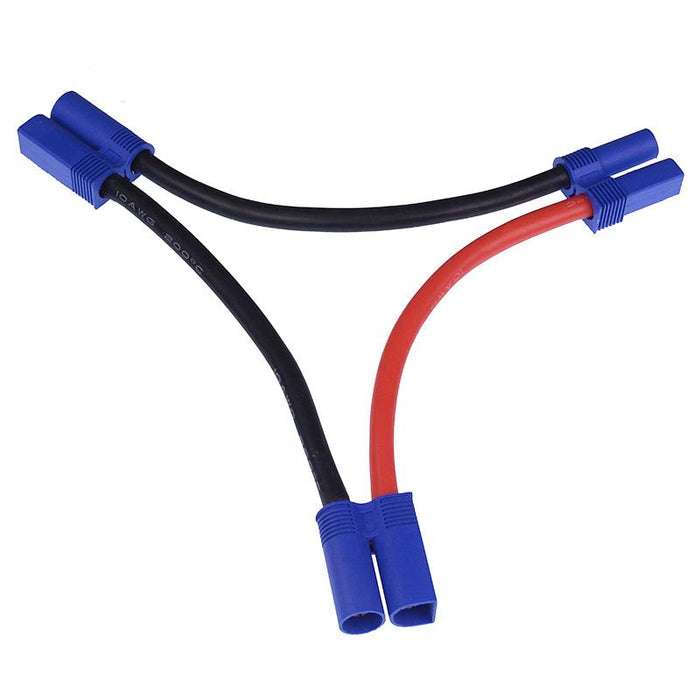 EC5 female to 2 male series adapter lead featuring 100mm of 10AWG silicone cable, suitable for RC applications.