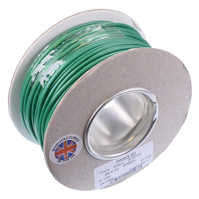 Green 2mm Thin Wall Cable 28/0.3mm 50M Reel 25A