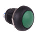 Green latching push button switch featuring a round actuator and SPST contacts. The switch features IP65 protection rating and is suitable for mounting in 12mm diameter cut-outs. The switch is suitable for a wide range of applications including automotive, control panels, industrial, appliances etc.