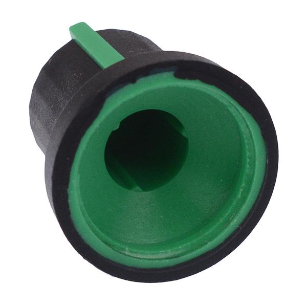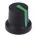 CLIFF K87MBR black control knob with a moulded green indication line. The knob has a rubberised soft-touch feel and is suitable for use with 6mm diameter splined shafts.