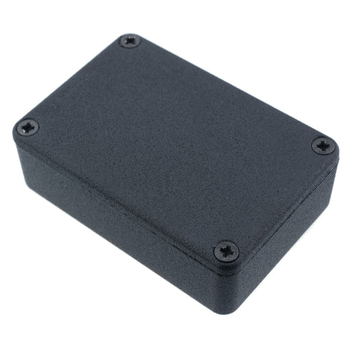 Hammond diecast aluminium enclosure with a textured long lasting finish. The enclosure has a tight and secure lid which protects the contents from dust and water. It comes with 4 self-tapping screws and is suitable for hard wearing applications.