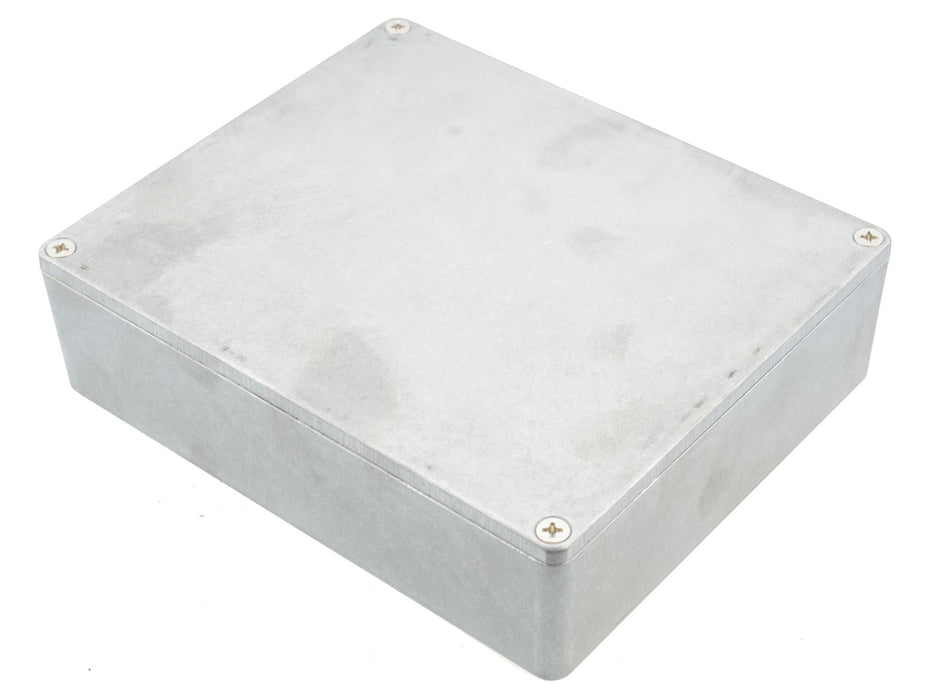 Hammond diecast aluminium enclosure with a natural long lasting finish. The enclosure has a tight and secure lid which protects the contents from dust and water. It comes with 4 self-tapping screws and is suitable for hard wearing applications.