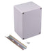 DN15E grey junction box moulded from ABS with internal mounting stand-offs and IP66 protection rating. The boxes come with 35mm of DIN rail and are suitable for enclosing PCBs, control and mechanical components.