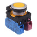Yellow button 1NO-1NC contacts Screw contact blocks Maintained operation 22.3mm mounting hole IP65 protection level 2.5mm thick bezel 39.9mm depth behind the panel Rating: 120VAC 10A, 240VAC 6A, 8A 24VDC