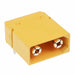 Male XT90PW connector featuring gold plated brass contacts and high temperature nylon housing. The connectors are housed in a compact package and are suitable for mounting horizontally to a board.