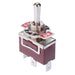 Standard size toggle switch featuring On-Off-(On) momentary operation and SPDT contacts. The switch provides a reliable mechanism and is suitable for 12mm panel mount applications.