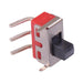 Right angle On-On miniature slide switch featuring SPDT contacts and PCB terminals. The switch features a 0.3A current rating making them ideal for through hole applications requiring a reliable switch.