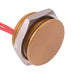 Body material: gold anodized Body colour: gold Panel cut-out: 16mm Contacts: SPST-NO Protection rating: IP68, IP69K mounted on panel Rating: 200mA 24VAC/DC Terminals: flying leads Bushing: flat operator, 1mm height Diameter: 18mm