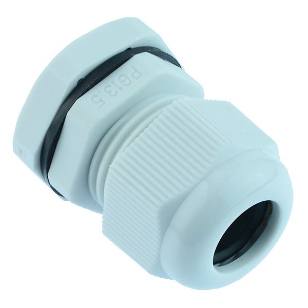 Grey PG13.5 dome cable gland manufactured from PA6 nylon, designed for use with circular profile cable providing waterproof IP68 protection.
