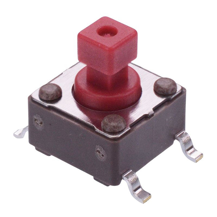 Vertical SMT mounting 6mm x 6mm package 7.3mm height 2.4mm x 2.4mm square actuator Rating: 50mA 12VDC Operating force: 260g Travel: 0.25mm APEM PHAP5-30 series