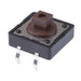 Vertical through hole mounting 12mm x 12mm package 7.3mm height 3.8 x 3.8mm square actuator Rating: 50mA 12VDC Operating force: 260g Travel: 0.35mm APEM PHAP5-50 series