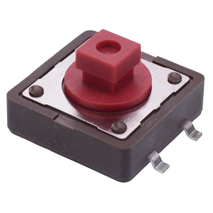 Vertical SMT mounting 12mm x 12mm package 7.3mm height 3.8 x 3.8mm square actuator Rating: 50mA 12VDC Operating force: 260g Travel: 0.35mm APEM PHAP5-50 series