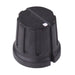 PN-38D matt black control knob manufactured from phenolic resin featuring serrated sides and white indicator suitable for switches and potentiometers with 6.1mm splined spindles.