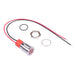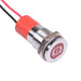 Colour: red Panel cut-out: 14mm Voltage rating: 12VDC Current rating: 20mA Panel thickness: 11mm max Brightness: 10mcd Operating voltage: 10.8 to 13.2VDC Bezel material: chrome plated brass Protection level: IP67 Terminal type: 200mm wires Length: 30.6mm Diameter: 16mm UL, REACH and RoHS certified