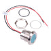 Colour: blue Panel cut-out: 22mm Voltage rating: 12VDC Current rating: 40mA Panel thickness: 10mm max Brightness: 120mcd Operating voltage: 10.8 to 13.2VDC Bezel material: stainless steel plated brass Protection level: IP67 Terminal type: rear epoxy 200mm wires Length: 24.5mm Diameter: 28mm UL, REACH and RoHS certified