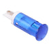 Colour: blue Panel cut-out: 12mm Voltage rating: 12VDC Current rating: 20mA Panel thickness: 0.8 to 1.6mm Brightness: 1600mcd Operating voltage: 10.8 to 13.2VDC Bezel material: polycarbonate Terminal type: quick connect / solder 2.8 x 0.8mm Length: 38.5mm Diameter: 14mm UL, REACH and RoHS certified