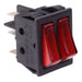 Red dual On-Off rocker switch featuring neon illumination and DPST contacts. The switch features a 16A 250VAC rating and quick connect terminals, suitable for a wide range of industrial applications.