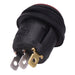Waterproof illuminated circular rocker switch featuring red LED illumination and SPST contacts. The switch requires a 20mm panel cut-out and features 4.8mm quick connect terminals. The switch is suitable for a wide range of DC applications.