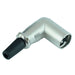 Right angle male XLR plug featuring 3 poles and integral cable strain relief, suitable for assembling your own microphone leads.