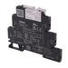 Coil voltage: 24VAC/DC Allowable switching curent: 6A Contact configuration: SPDT DIN rail mounting Screw terminals Universal AC/DC socket with surge suppression and green LED indicator Reverse polarity protected Release lever for easy locking and removal of relay Dimensons: 88.0 x 69.6 x 6.0mm (Height x depth x width)