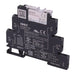 Coil voltage: 12VDC Allowable switching curent: 6A Contact configuration: SPDT DIN rail mounting Screw terminals Universal AC/DC socket with surge suppression and green LED indicator Reverse polarity protected Release lever for easy locking and removal of relay Dimensons: 88.0 x 69.6 x 6.0mm (Height x depth x width)