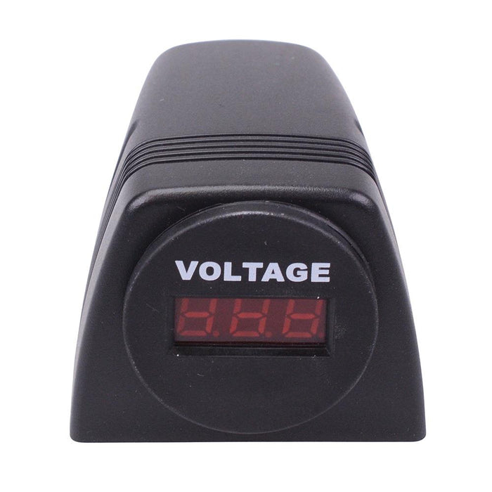 6V-33VDC range Red LED display Input voltage: 6-33VDC Reverse polarity protection Surge protection 6.3mm quick connect terminals Mounting hole pitch: 38.6mm Dimensions: 76.4 x 53.4 x 41.5mm (depth x width x height)