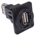 USB 2.0 A to USB 2.0 A feedthrough connector housed in a plastic XLR shell with 2.5mm mounting holes. The connectors are perfect for developing custom I/O configurations for wall-plates, rack panels etc. No soldering or punch terminations are required and mounting can be from the front or back. The connectors feature a low rear profile which accommodates the tightest behind the panel spaces."